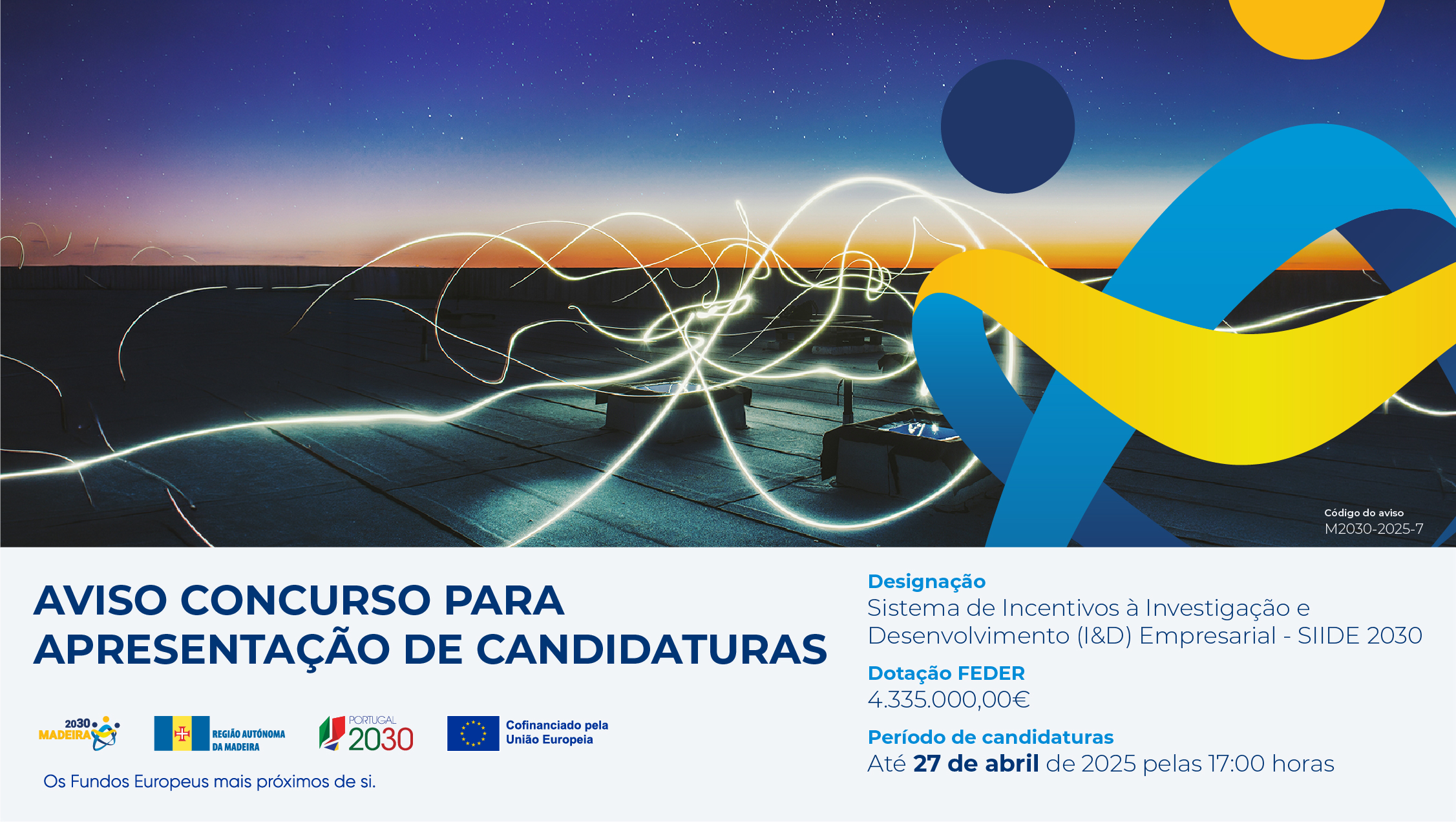Foi publicado o Aviso para apresentação de candidaturas por concurso M2030-2026-7 – Sistema de Incentivos à Investigação e Desenvolvimento (I&D) Empresarial – SIIDE 2030, no âmbito do Programa Regional da Madeira 2021-2027.