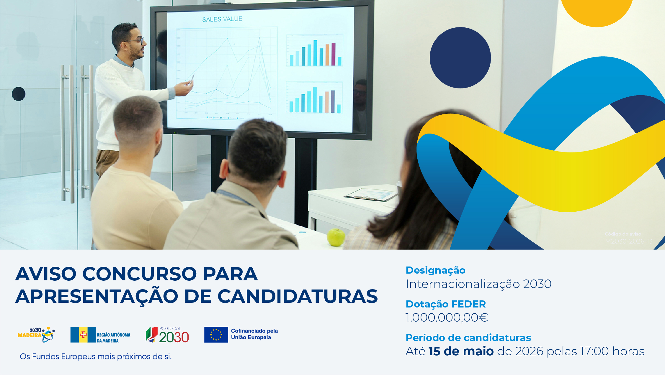 Foi publicado o Aviso para apresentação de candidaturas por concurso M2030-2026-13 – Internacionalização 2030, no âmbito do Programa Regional da Madeira 2021-2027.